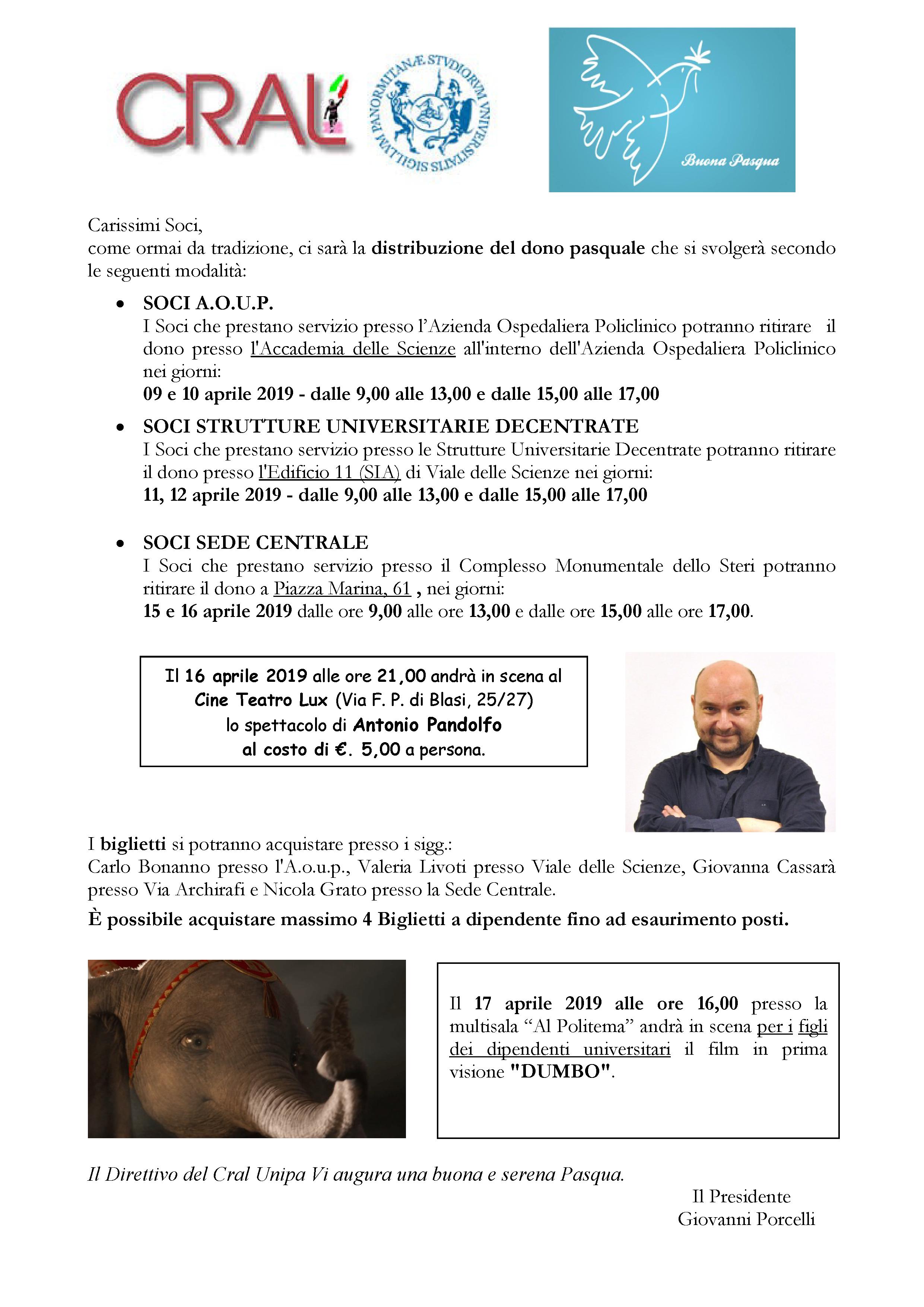 qui di seguito, il comunicato relativo alla distribuzione del dono pasquale e agli eventi dedicati: